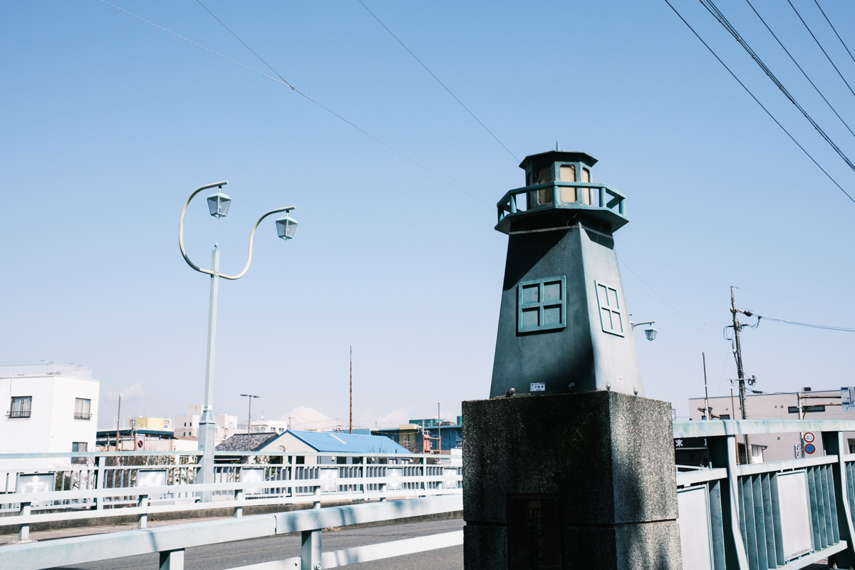 港橋に近づくと、街の景色から海辺の雰囲気へ切り替わり、空がぐっと広く感じられます。巴川の水面がきらりと光り、下流側には港町らしさも。橋のオブジェ越しに富士山がのぞく日もあります。すぐ近くには「甲州廻米置場跡」があり、港町としての歴史に触れられるのも魅力。そこから次郎長通り商店街へ進めば、看板や店先にどこか懐かしい空気が漂い、「次郎長生家」も寄り道にぴったりです。