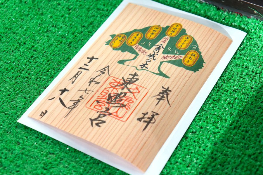 この教えは、家康公が写しをとり、家中の者にも伝えようとしたものとされています。現在では、その思想を象徴するかたちとして、杉の木を用いた「金のなる木」の御朱印が授与されています。