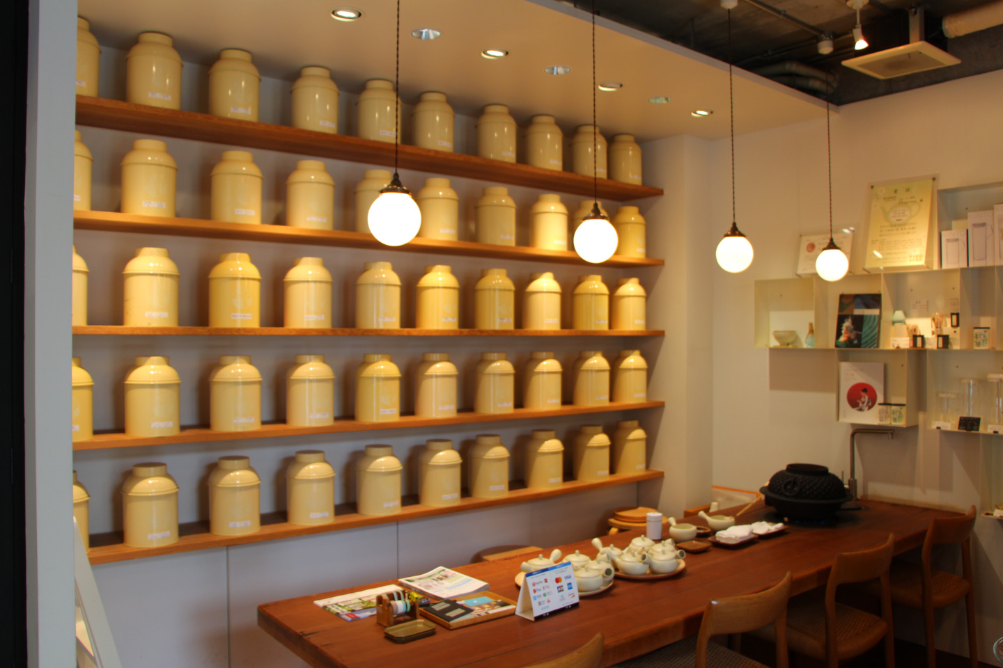 店内には自由に試飲できるテーブルとカフェカウンターを備え、煎茶を使ったエスプレッソや煎茶ラテなど、ここでしか味わえない一杯を楽しめます。