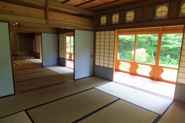 を表現した4つの庭を中心に、春は桜、夏は紫陽花、秋は紅葉、冬は椿など、