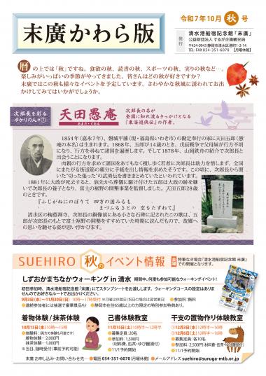 清水次郎長が晩年営んだ船宿を復元した施設、清水港船宿記念館『末廣』では、次郎長さんにまつわる特集記事や末廣で開催されるイベントなどを紹介する『末廣かわら版』を定期的に発行しております。