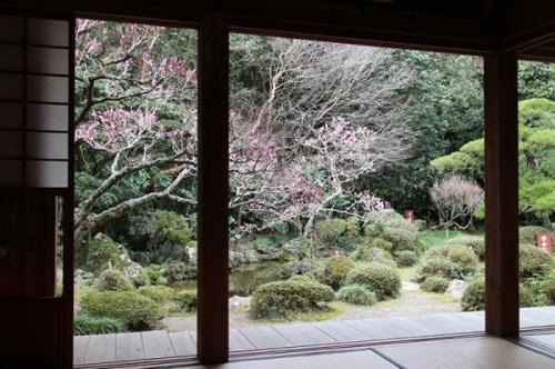 今川氏に仕えた連歌師宗長ゆかりの寺。天柱山や丸子富士を巧みに取り入れた借景式の庭園は、国の名勝・史跡に指定され、京の東山を模した竹林から登る月の風景も優れた寺として知られています。