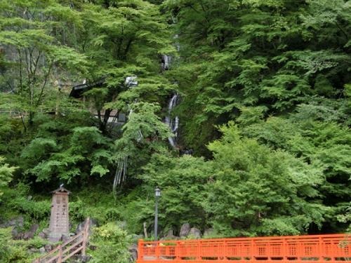 安倍川の源流域、梅ヶ島温泉の温泉街にある「おゆのふるさと公園」から見ることのできる滝です。滝のある山が梅ヶ島温泉の源泉にもなっていて、「おゆのふるさと公園」には、山の岩肌から湧いて落ちる源泉の洞窟「穴ぶろ」や、湯之神社もあります。