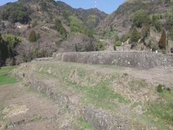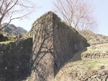 中心である御殿の西側から南側にかけて石垣を多用し、三段の郭をもつ小城郭風の縄張りを特徴としています。石垣の高さは2m以下に抑えられていますが大手の一部では4mに達するものも見られます。