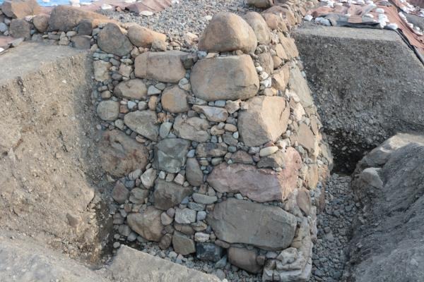 天守台の大きさや位置、残存状況などの学術的データを得るために、平成28年度から令和3年度までの6年間をかけ発掘調査を実施しました。調査の結果、戦国時代末期、江戸時代の2つの時代の天守台や大量の金箔瓦等が発見されました。大迫力の2つの時代の天守台を同時に見学できます。