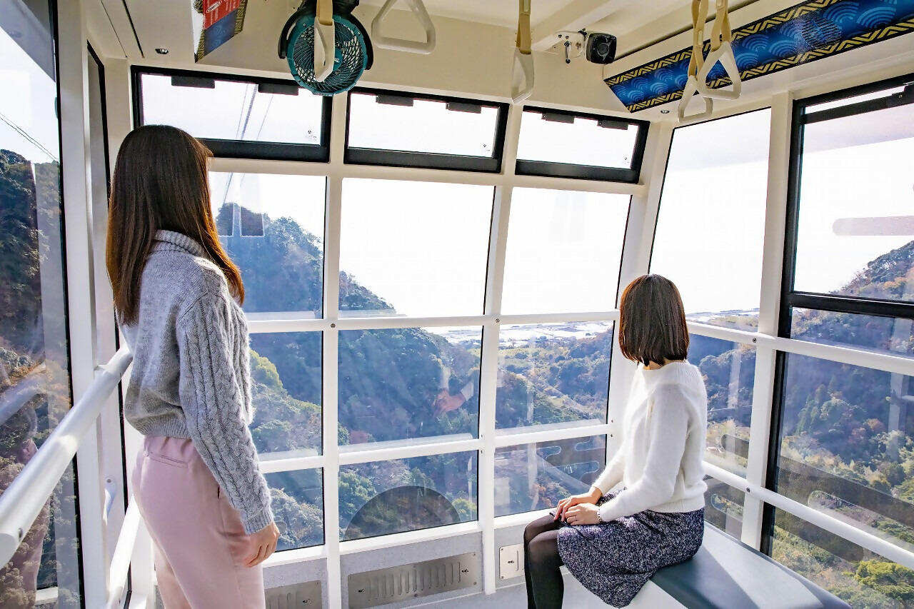 日本平ロープウェイは、日本観光地百選コンクールで1位に選ばれたこともある名勝「日本平」の山頂と静岡県内で唯一の国宝建造物がある徳川家康ゆかりの史跡「久能山東照宮」を5分間で結んでいる索道です。